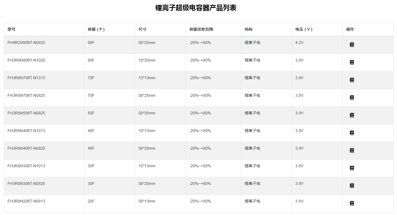 锂离子超级电容器符合AEC-Q200汽车标准条款最高功率可达2W 最低TCR为±50 ppm/℃ 适于作电流探测用电阻器如电源电路等机械强度高、高频特性优越符合RoHS指令要求符合无卤素要求◆应用* 物联网终端 GPS 定位、通信电源,NB 通信/脉冲功率电源;* 电动工具/ETC 及其