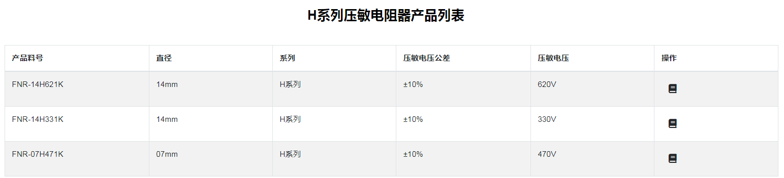■H 系列压敏电阻器: