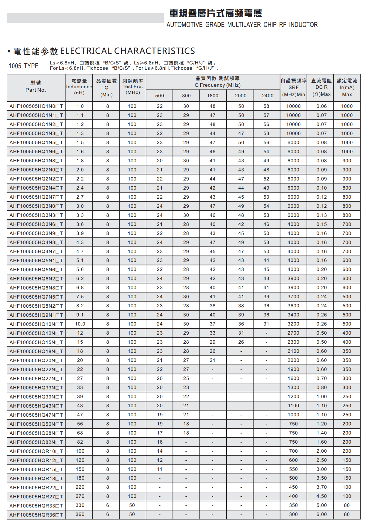 车规叠层片式高频电感器具有高自谐振频率的电感器,用于汽车多媒体何无线连接系统、车身与舒适系统。